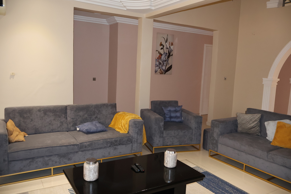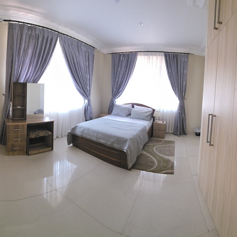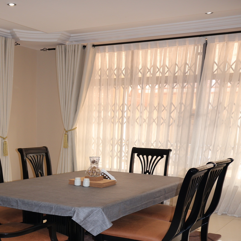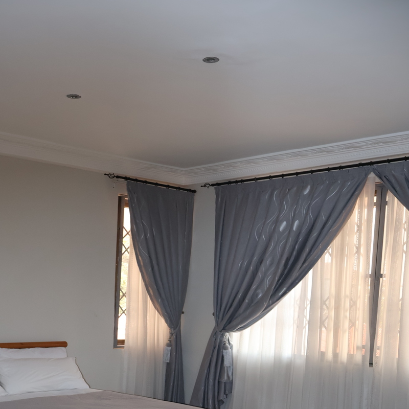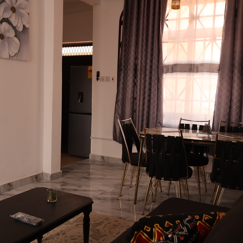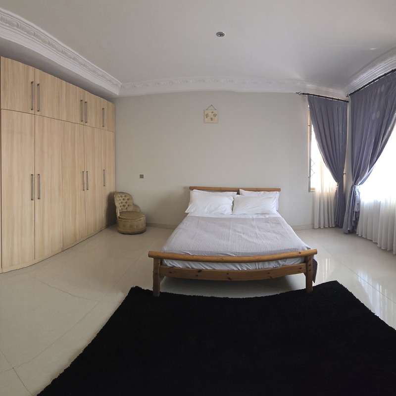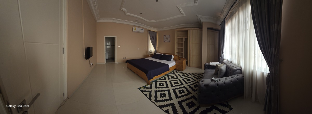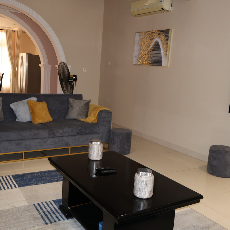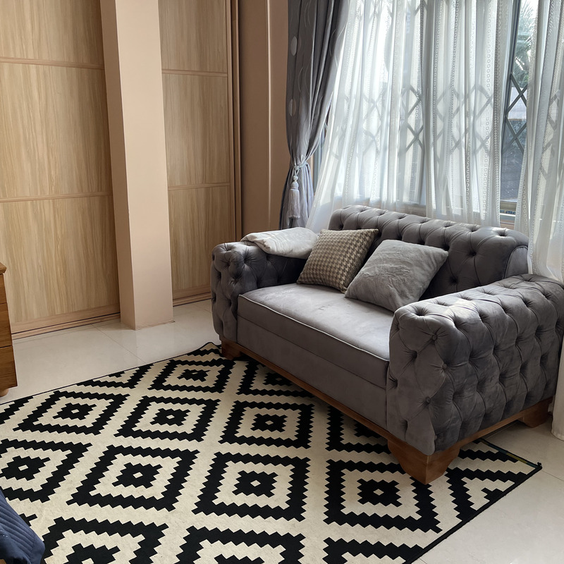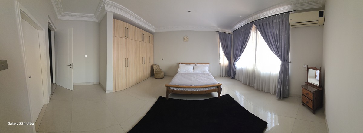 Enjoy comfort, privacy, and independence in this beautifully furnished self-contained outer house, ideal for both short and extended stays. The bedroom features a comfortable double bed with soft linens, bedside lighting, and a spacious wardrobe with mirrored panels, creating a relaxing and practical retreat. Large curtained windows fill the room with natural light while maintaining privacy, giving the space a warm and inviting feel.