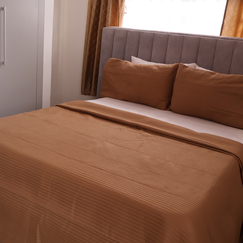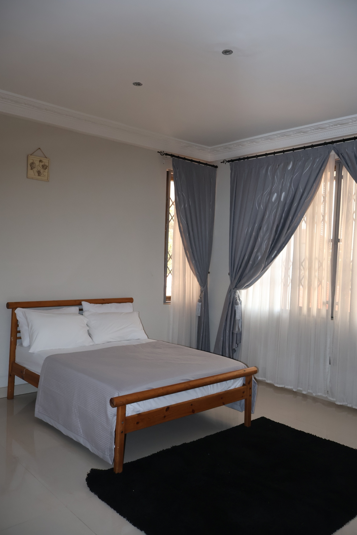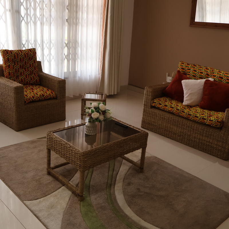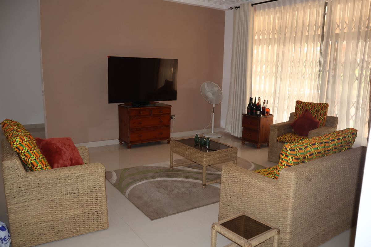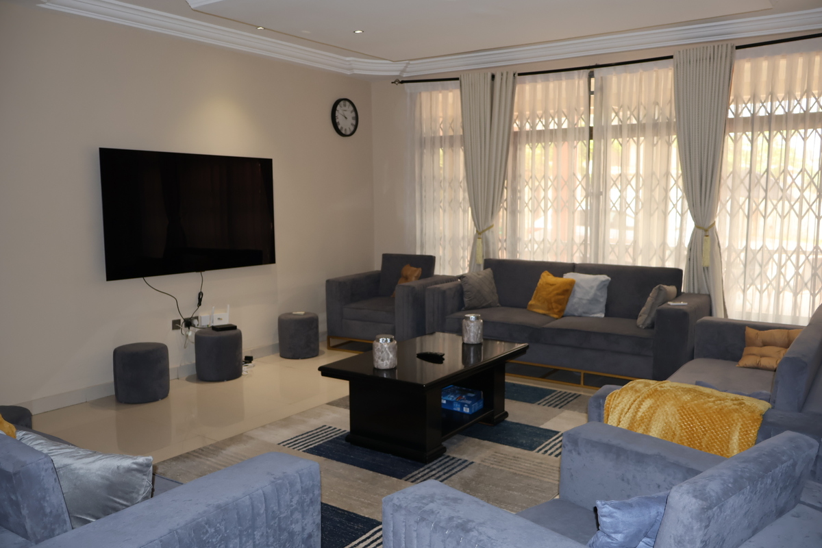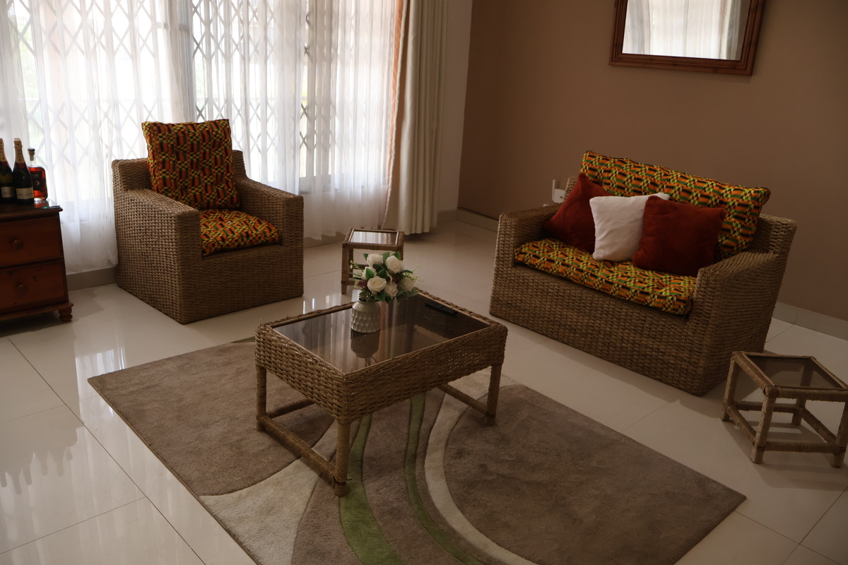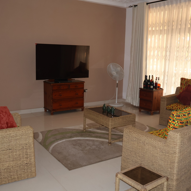 Enjoy comfort, privacy, and independence in this beautifully furnished self-contained outer house, ideal for both short and extended stays. The bedroom features a comfortable double bed with soft linens, bedside lighting, and a spacious wardrobe with mirrored panels, creating a relaxing and practical retreat. Large curtained windows fill the room with natural light while maintaining privacy, giving the space a warm and inviting feel.