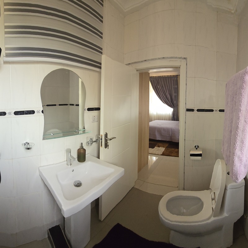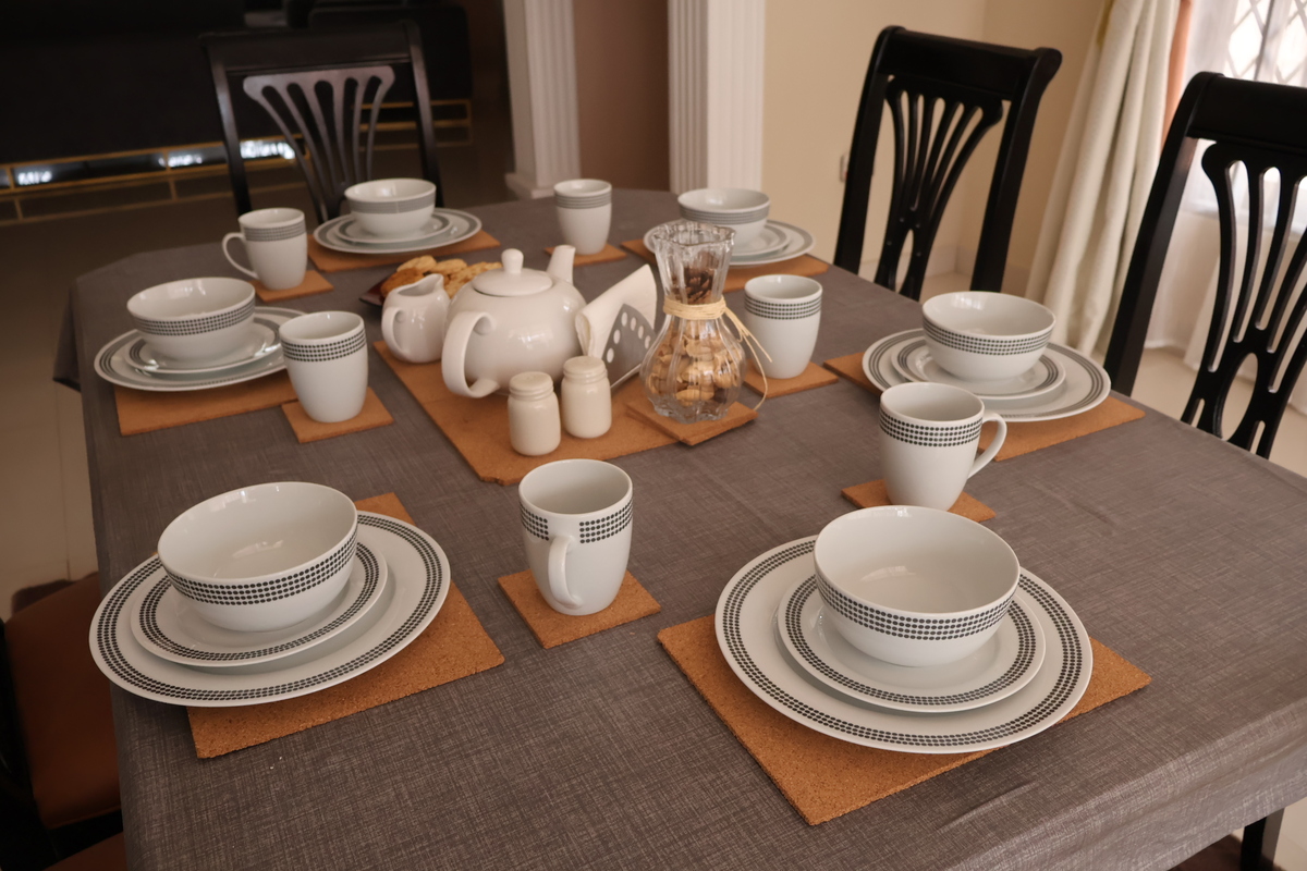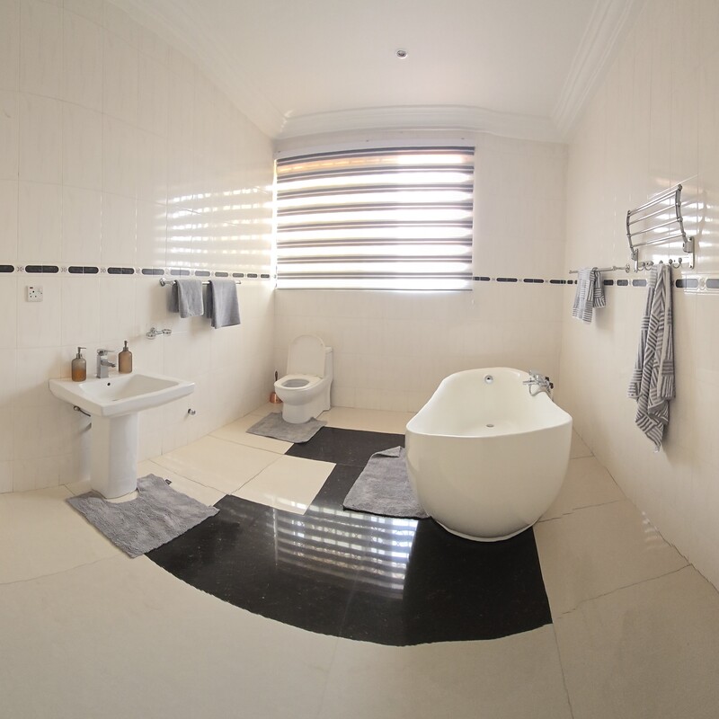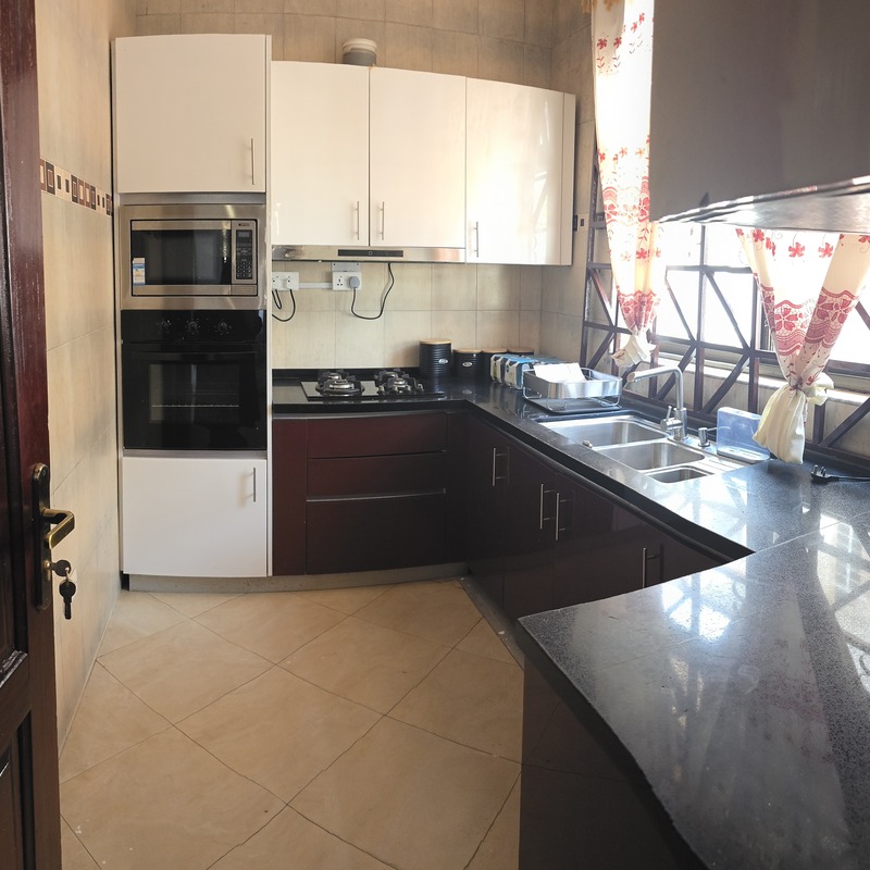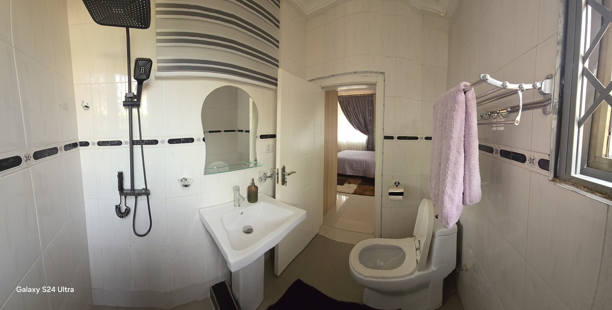 Guests also benefit from a fully equipped kitchen with ample storage, generous counter space, cooking hob, oven, microwave, and sink area for convenient self-catering. For added convenience, the property includes separate private shower and toilet rooms, allowing extra comfort and flexibility during your stay.